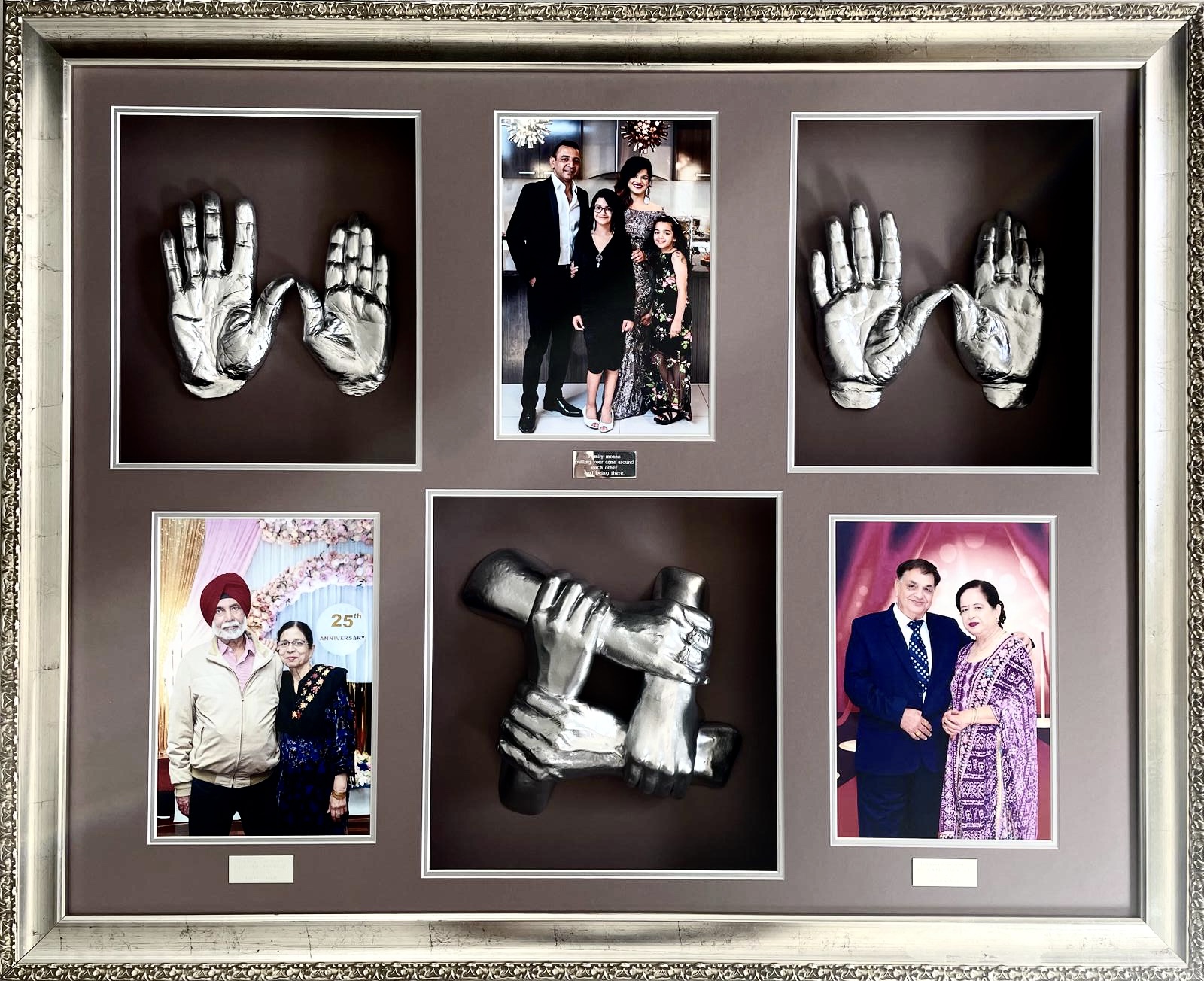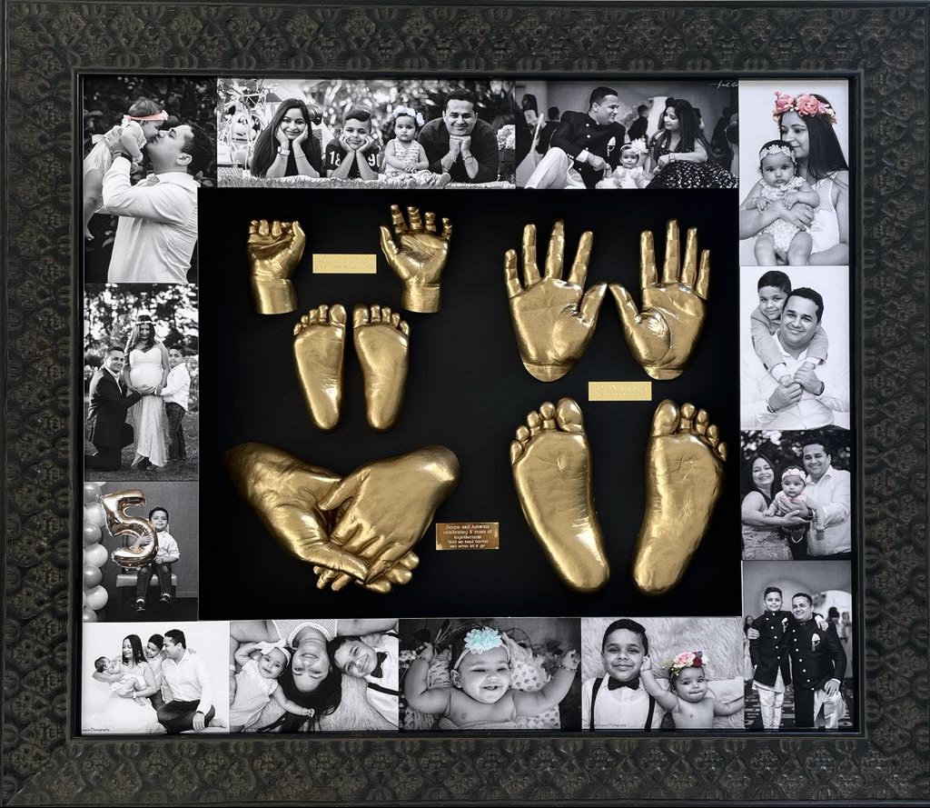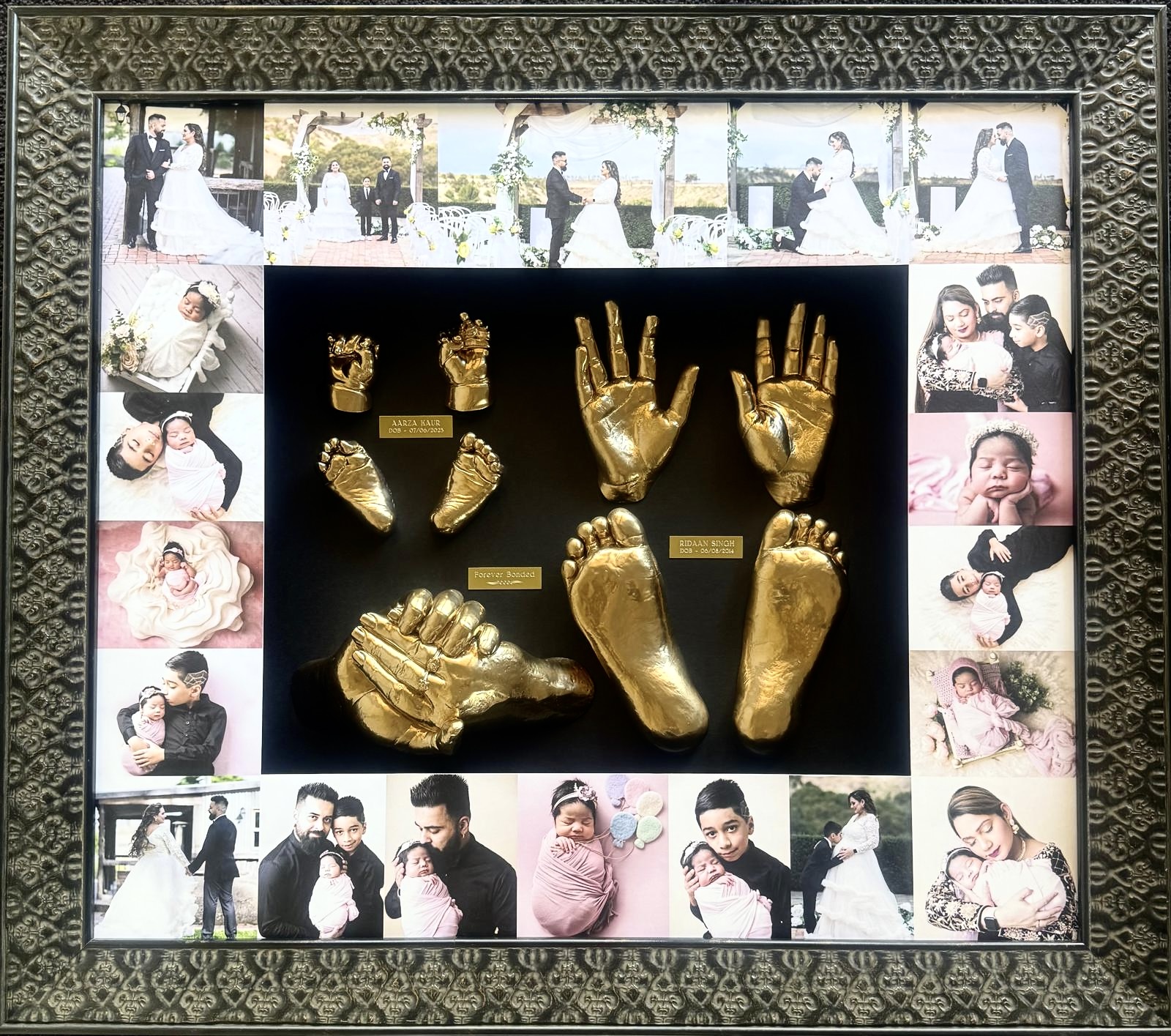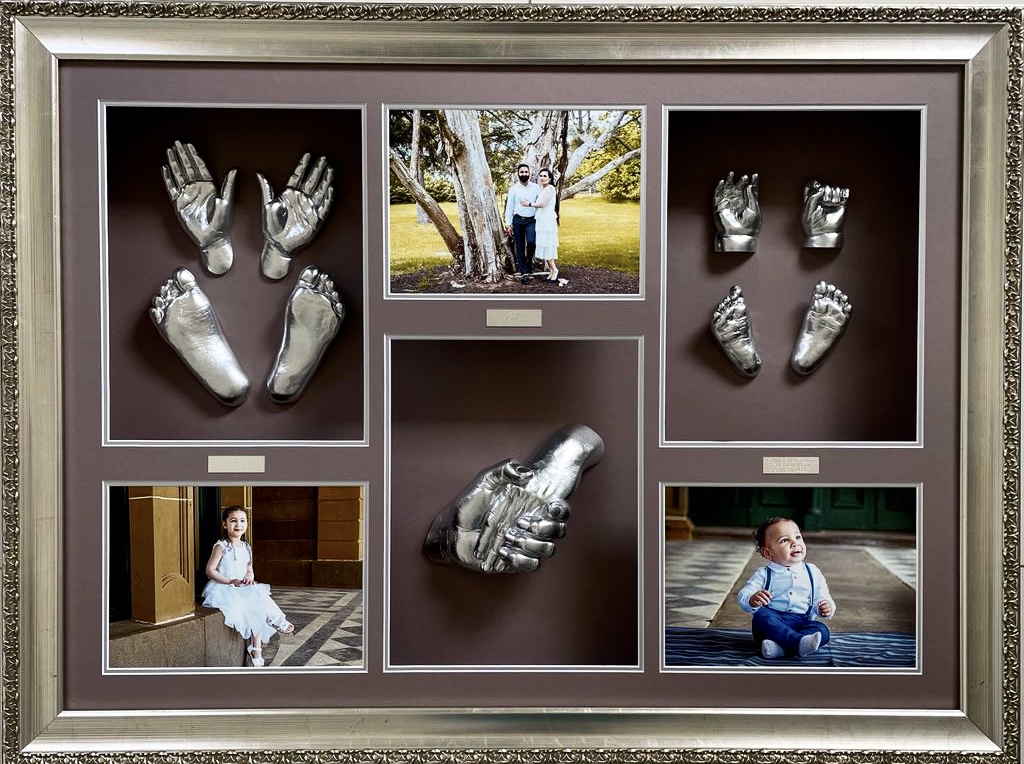 Our Mastercast Frame is a fully customised creation — designed to reflect your story, style, and sentiment. You can choose your colours, frame designs, layouts, and personal engravings, so every keepsake is as individual as the moment it preserves. Whether it’s a baby keepsake frame, a wedding or anniversary hand casting, or a family legacy impression, we create timeless art that’s made just for you.